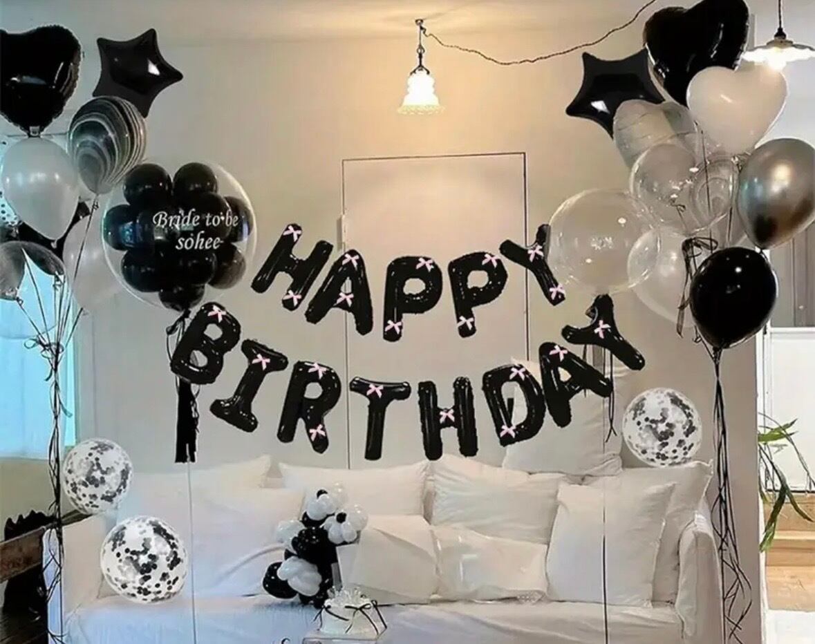 ★ HAPPY BIRTHDAY バルーンセット - ブラック - デコレーション 誕生日 サプライズ パーティー 生誕祭 バースデー イベント 装飾