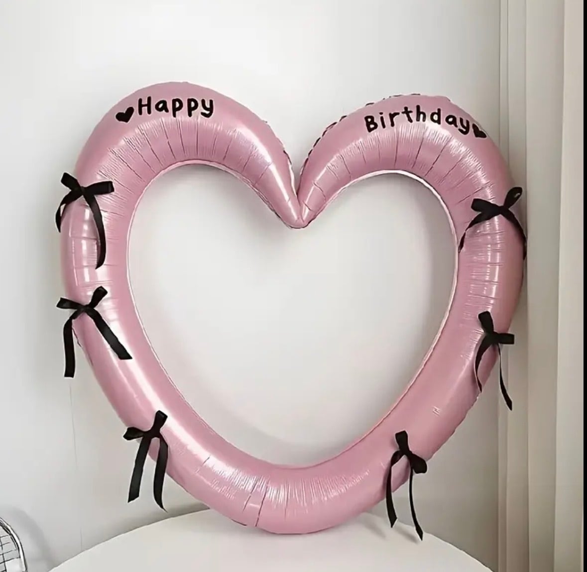 ★ Happy Birthday ハートバルーン ハッピーバースデー ピンク 黒 ブラック リボン 大きいハートのバルーン バースデーサプライズ 地雷系 量産型