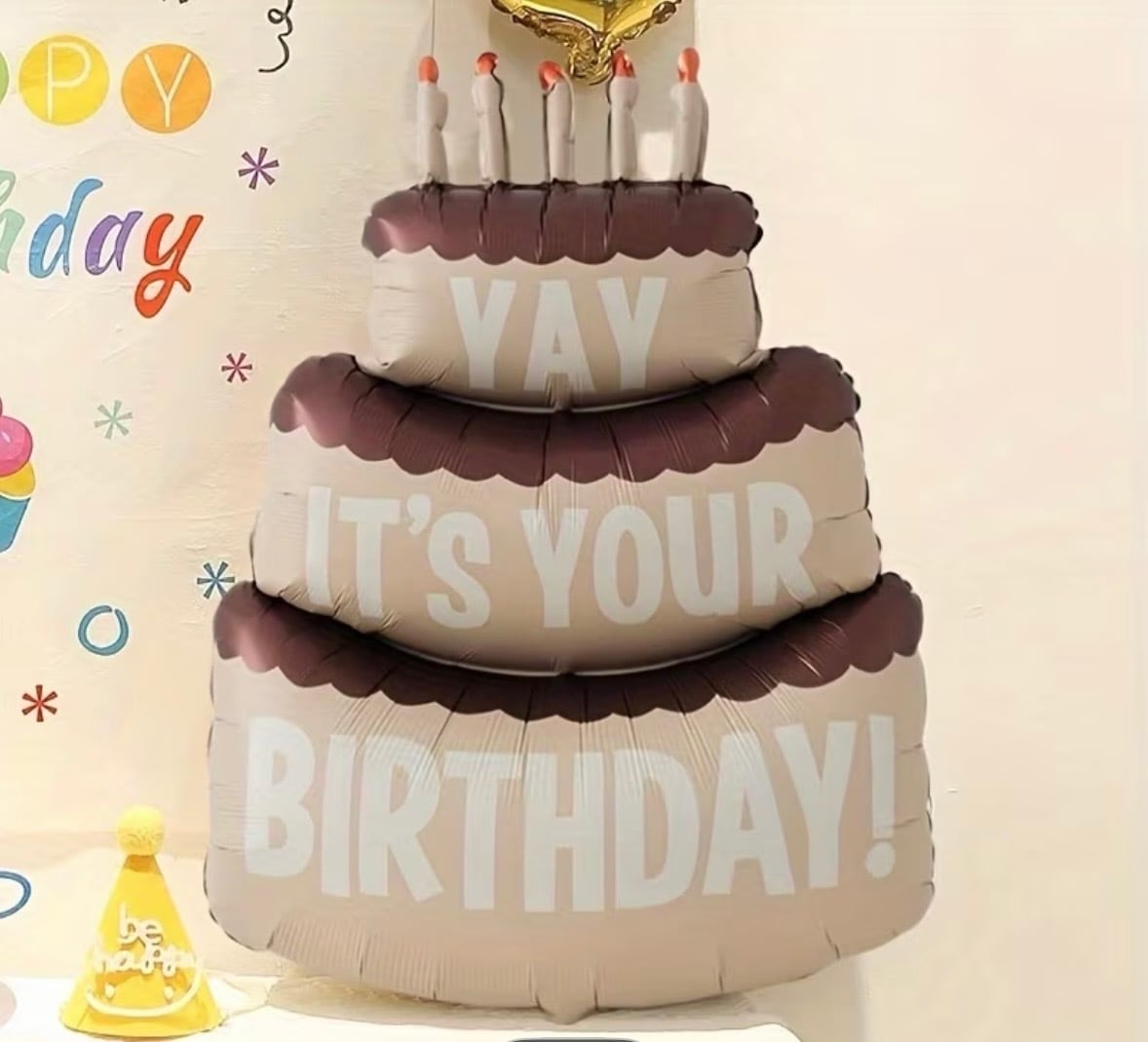 ★ 【期間限定セール中!】バースデーケーキバルーン ケーキ型 風船 バルーン 誕生日 サプライズ 飾り デコレーション ビッグサイズ ブラウン