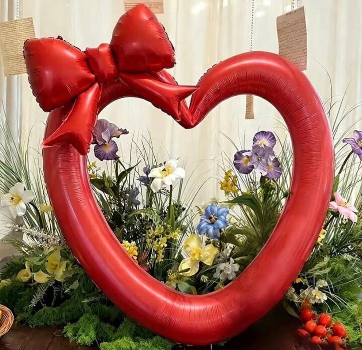存在感抜群のハート型バルーンに、大きなリボンが付いた可愛すぎるデザイン。