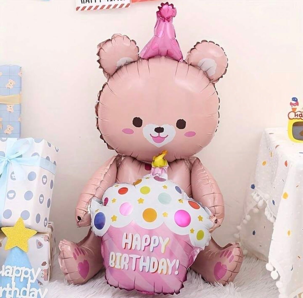 存在感抜群のくまちゃんバルーンに、カップケーキデザインが合わさった可愛すぎるデザイン!