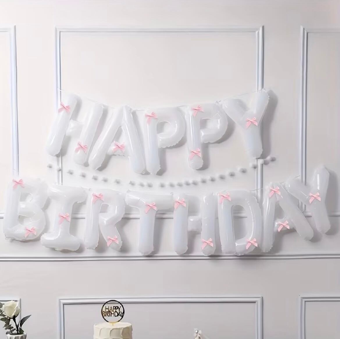 ホワイトバルーンにピンクリボンをあしらった、大人ガーリーなバースデーバルーン!
